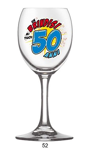 Calice in vetro in scatola regalo con stampa un brindisi ai tuoi 50 anni
