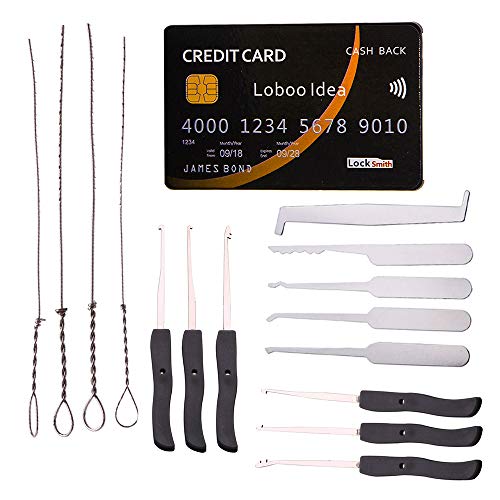 Loboo idea strumenti per grimaldelli per fabbro da 15 pezzi include set di grimaldelli stile carta di credito da 5 pezzi e kit estrattore chiave rotto da 10 pezzi