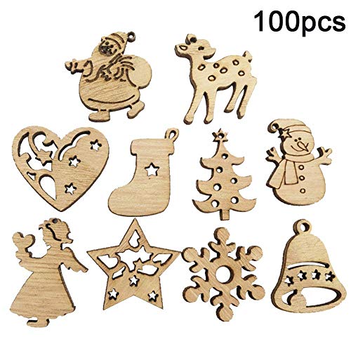 100pcs ornamenti in stile natalizio pupazzo di neve di babbo natale chip di legno albero di natale ciondolo appeso finestra home decor 100 pezzi conveniente