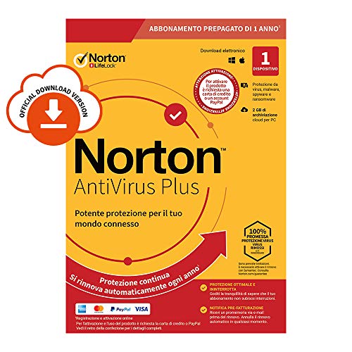 Norton antivirus plus 2020 antivirus software per 1 dispositivo e 1 anno di abbonamento con rinnovo automatico pc o mac codice d'attivazione via email