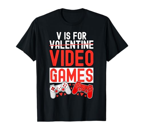V is for video gamer valentines day gamer boys girl men gift maglietta