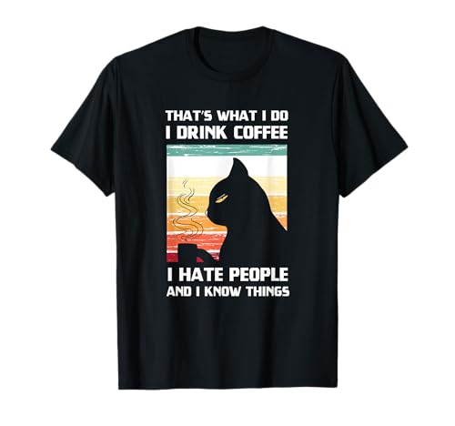 Questo è quello che faccio bevo caffè tee i hate people black cat maglietta