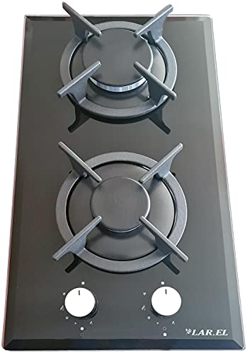 Piano cottura larel in vetro nero domino 2 fuochi griglie piattina inox metano o gpl
