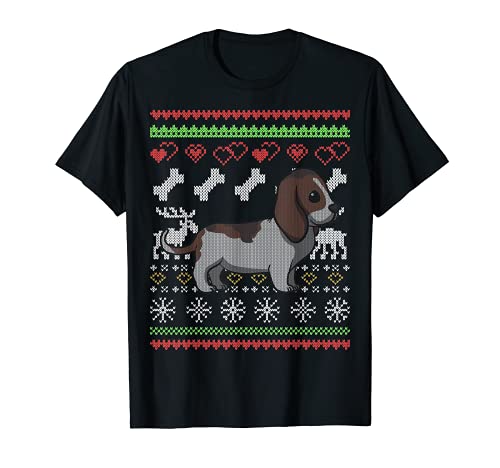 Basset hound dog babbo natale ugly christmas pattern x-mas maglietta