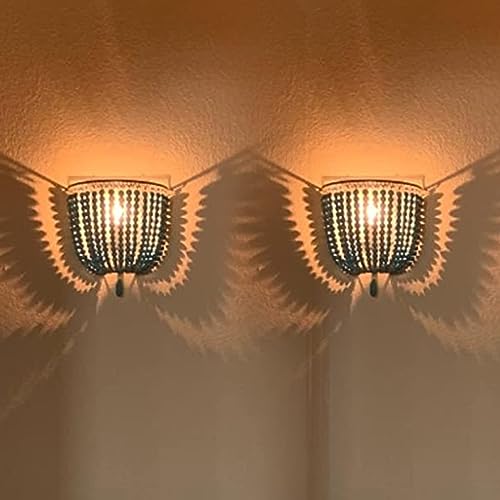 2 pack lampada da parete vintage con perline in legno grigio blu finitura retrò antico con cablaggi rigidi per apparecchi da camera da letto
