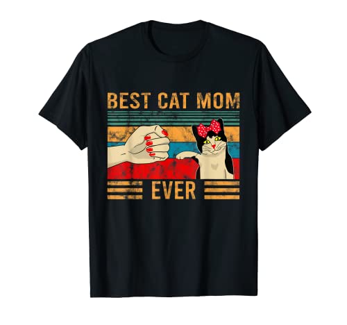 Best cat mom ever gatto fist bump migliore mamma mai gatti maglietta