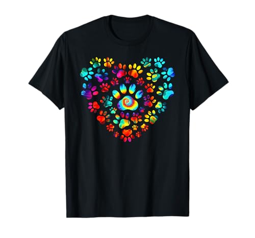 Tie dye love dogs paw print heart animal lover maglietta