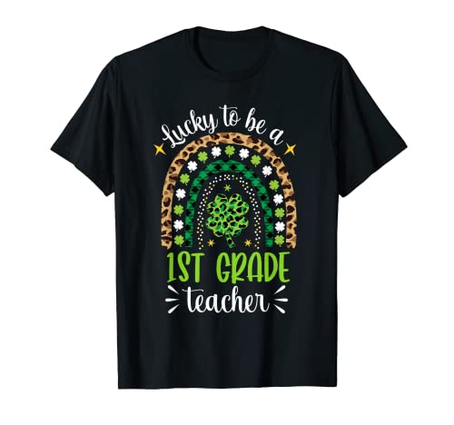 Lucky to be a 1 ° teacher rainbow st patrik's day maglietta
