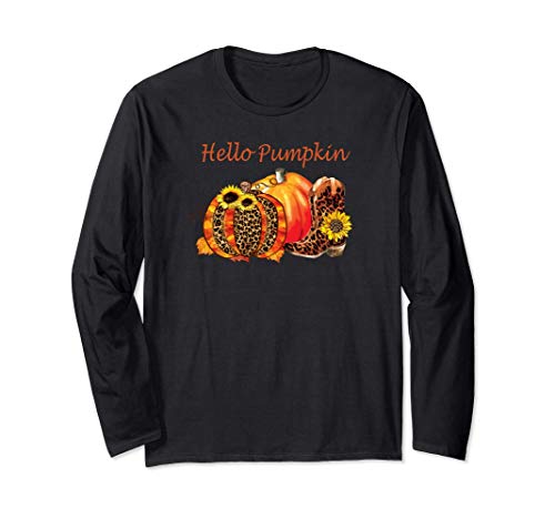 Hello pumpkin halloween leopard boots and sunflowers graphic maglia a manica