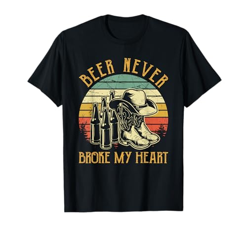 Beer never broke my heart tshirt uomo donna country music maglietta