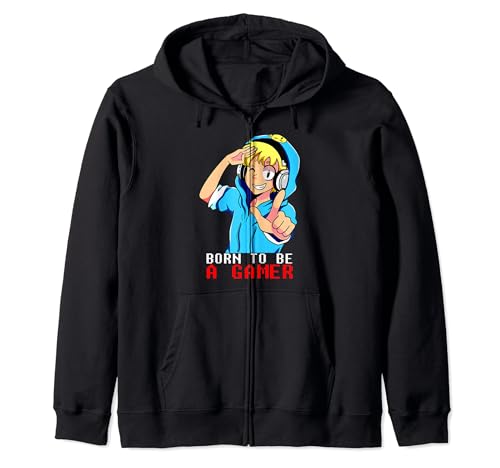 Born to be a gamer tee gaming kids boy perfect gaming lover felpa con cappuccio
