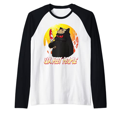 Six feet people scary black cat with knife halloween kitten maglia con maniche raglan