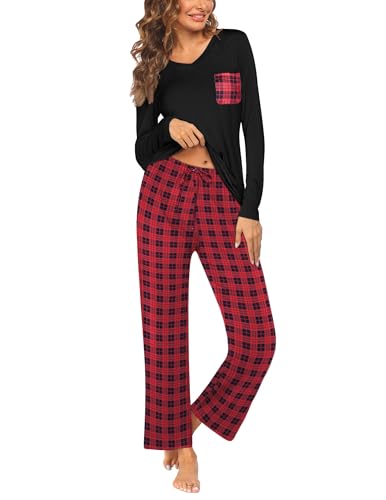 Conosci già il Pigiama da donna set top a maniche lunghe e pantaloni pigiama con scollo a v pigiama completo da notte plaid rosso xxl?