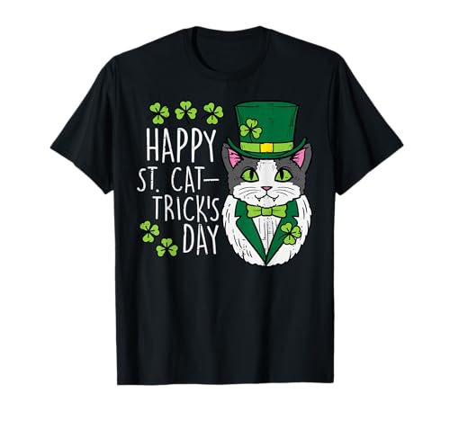 Felice st cat tricks patricks day divertente pet uomini donne bambini maglietta