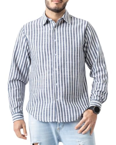 Tony backer camicia uomo a righe misto in cotone e lino manica lunga stile casual 2230