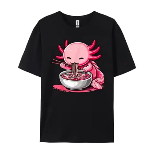 Anime kawaii axolotl eating ramen noodles kids teen girl boy men clothing shirts for men black xl