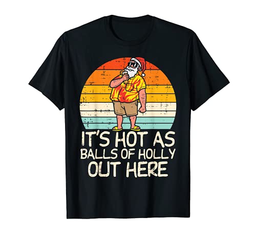 Hot as balls of holly santa summer christmas in july xmas maglietta