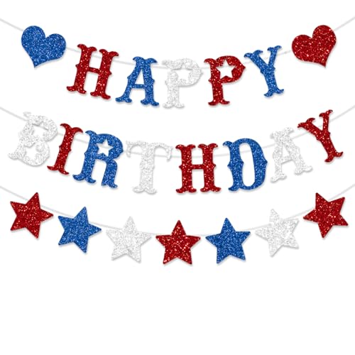 Al momento il venditore che ha la disponibilità per l\'acquisto di Rosso bianco blu buon compleanno banner decorazione glitter americano tema stelle decorazioni per il 4 luglio memorial day party è Amazon