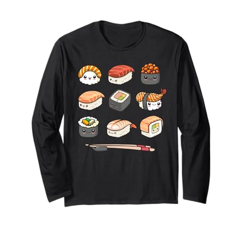 Happy sushi anime kawaii set japanese food lover otaku manga maglia a manica