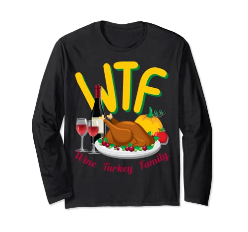 Turkey day shirt wtf wine turkey family thanksgiving day maglia a manica