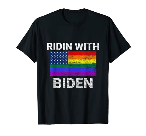 Ridin con biden lgbt rainbow gay pride flag 2020 elezione maglietta