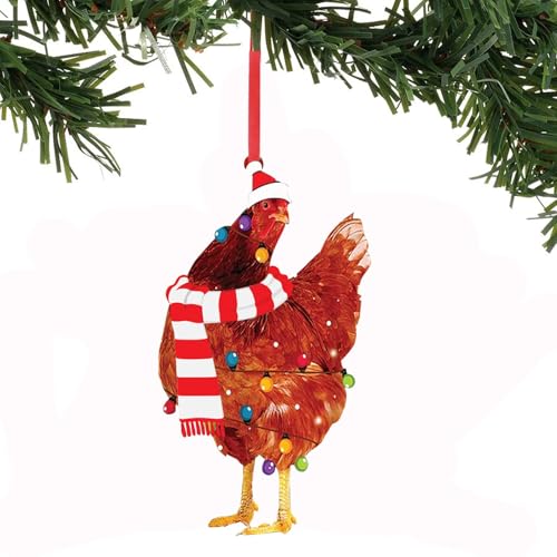 Ciondoli natalizi in legno a forma di gallina con sciarpa