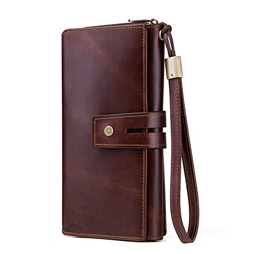 Portafoglio da uomo in pelle stile europeo e americano con cinturino da polso tri-fold clutch bag