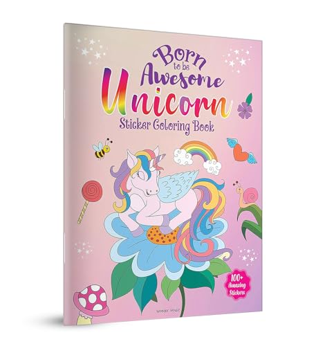 Born to be awesome unicorn : sticker coloring book with 100
