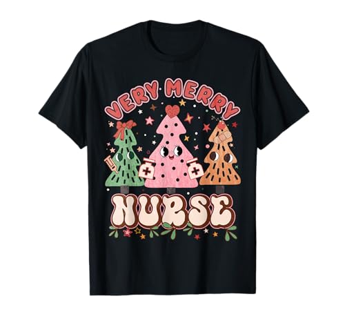 Retro groovy emergenza infermiera luci di natale maglietta
