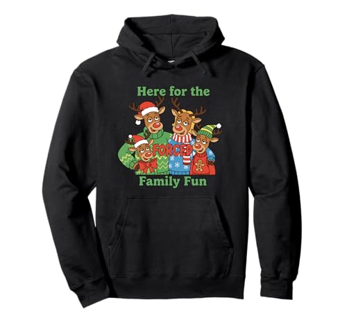 Divertente renna natalizia con scritta here for the forced family felpa con cappuccio
