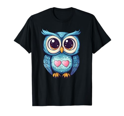 Simpatico gufo con occhi a cuore stile cartone animato maglietta