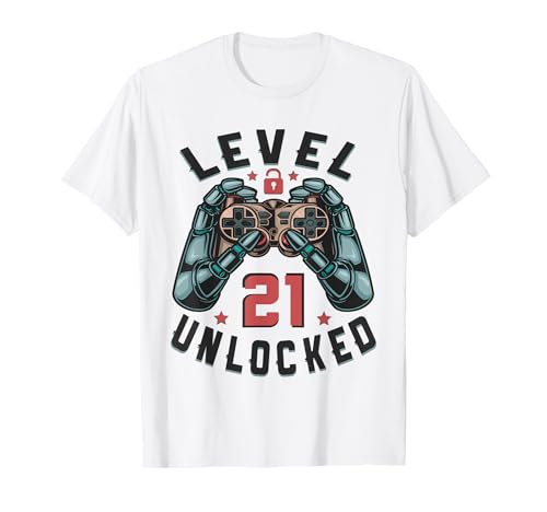 21 anni compleanno gamer shirt regalo level 21 unlocked maglietta
