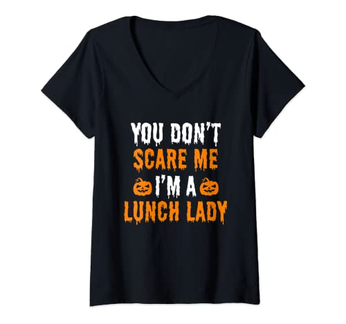 Conosci già il Donna costume di halloween divertente con scritta "you don't scare me i'm a lunch lady" maglietta con collo a v?