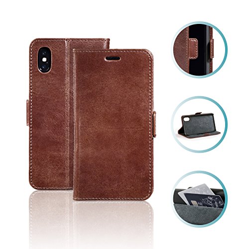 Leren hoes compatibel met apple iphone x i stijlvolle en elegante hoes van echt leder i inklapbaar i telefoonhoes met kaartenvak i leren case