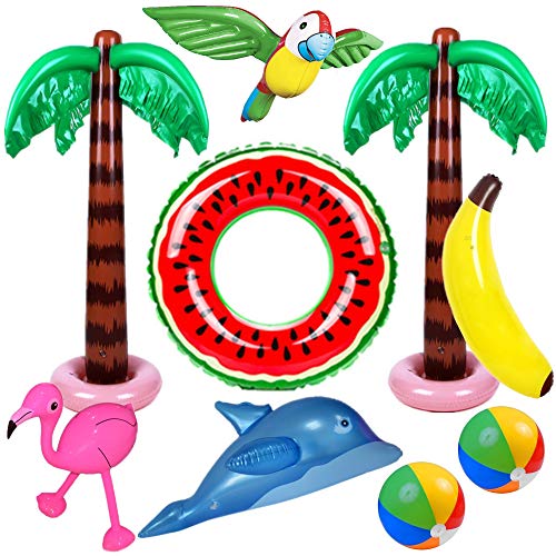 Op dit moment is de beste website om Opblaasbare palmbomen 9 stks hawaiiaanse feestdecoratie set flamingo speelgoed opblaasbare banaan strand ballen vliegende papegaai dolfijn voor luau party decor strand achtergrond te kopen op de website van Amazon.