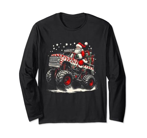 Pijama de papá noel montando monster truck navidad para niños y niñas manga larga