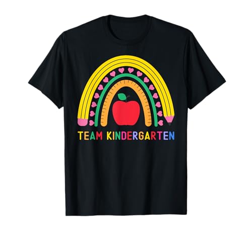 Team kindergarten rainbow teacher hombres mujeres volver a la escuela camiseta