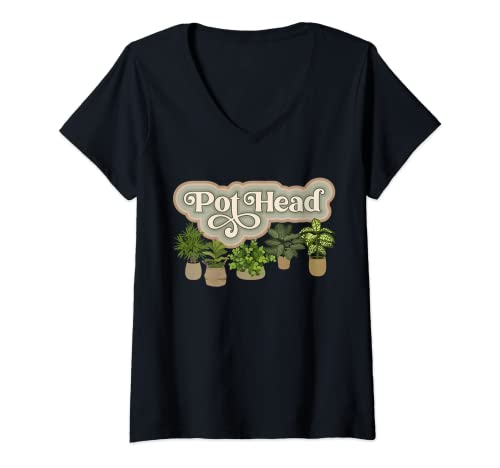Mujer retro pot head interior plantas amante plantas jardinero jardinería camiseta cuello v