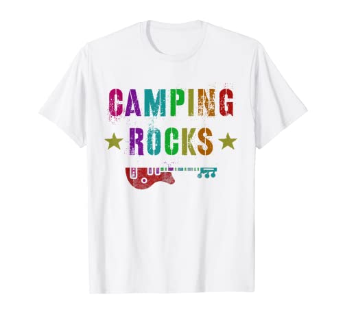 Funny camping rocks camper rockstar equipo de campamento de verano camiseta