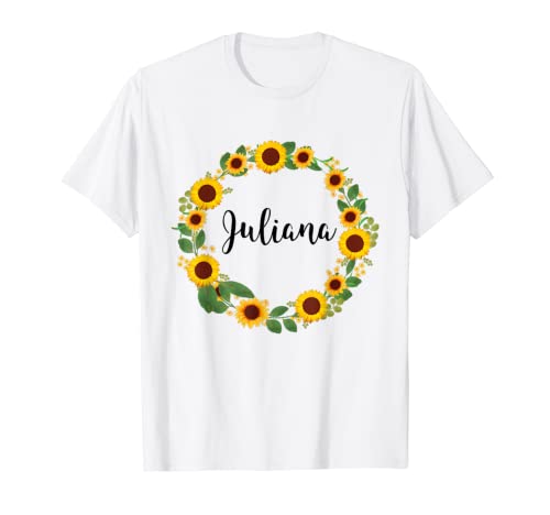 Juliana girasol corona flores floral nombre personalizado camiseta