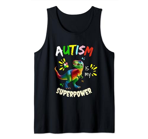 Camiseta con diseño de dinosaurio t-rex autism is my superpower para concienciar sobre el autismo camiseta sin mangas