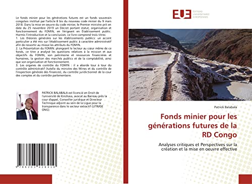 En estos momentos la mejor web donde adquirir Fonds minier pour les générations futures de la rd congo: analyses critiques et perspectives sur la création et la mise en oeuvre effective es en la página web de Amazon