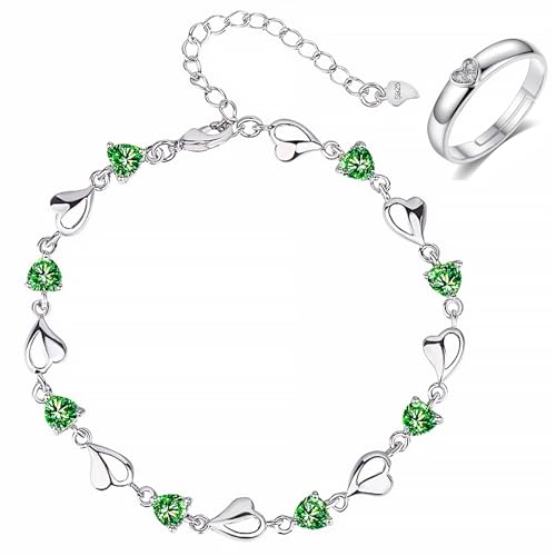 Pulsera plata mujer 925 pulsera de corazón ajustable con 1 anillo de plata