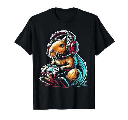 Funny capybara video games graphic tees hombres mujeres niño raro camiseta
