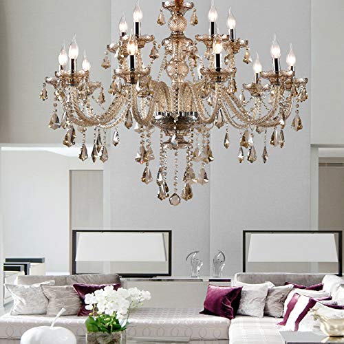 Lujoso araña de 15 brazos cristal k9 lámpara de techo lámpara de techo color coñac para sala habitación pasillo entrada