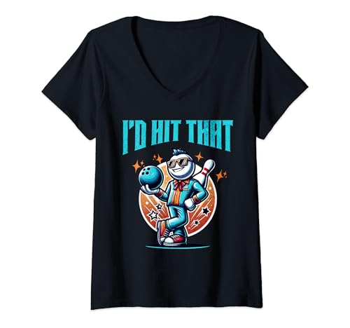 ¿Ya conoces el Mujer funny bowling "i'd hit that" vintage retro bowler bowling camiseta cuello v?