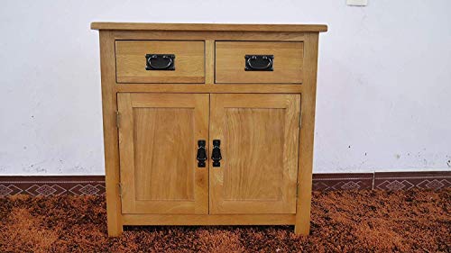 Oak furniture aparador pequeño de roble con 2 puertas y 2 cajones