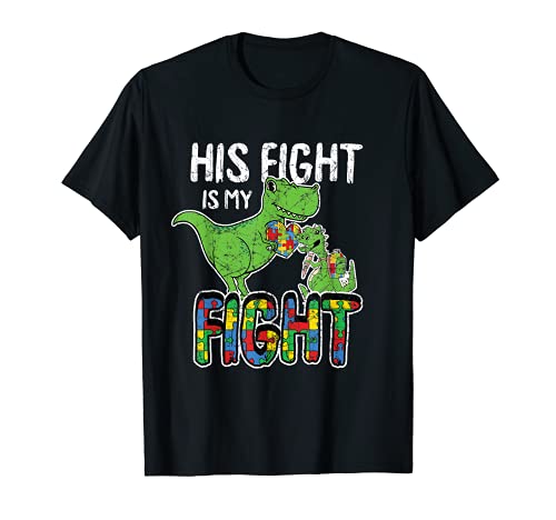 Regalo para mamá con texto en inglés his fight is my fight autism awareness t-rex camiseta