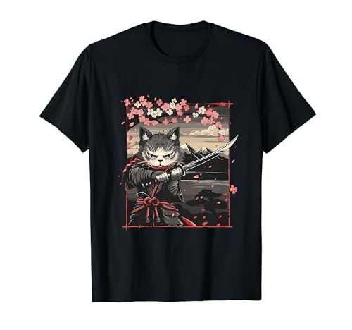 Gatito samurai japonés ninja camiseta
