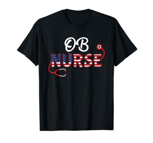 Estados unidos bandera americana ob enfermera estetoscopio patriótico obstétrico camiseta